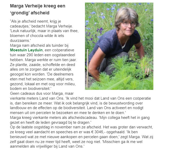 Artikel in aprilnummer van Landscoop (nieuwsbrief van Land van Ons) & website Land van Ons